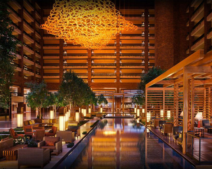 Set in the heart of Downtown Dallas, Texas, the Hilton Anatole hotel is just minutes from the arts and entertainment districts of the West End and Deep Ellum. With the largest hotel art collection in the whole of the US, boasting over 1,000 exotic pieces from around the world, a full service health club & spa and a choice of eight restaurants and bars, the Hilton Anatole is a destination in itself. Relax in one of this Downtown Dallas hotel's beautifully detailed, Asian-inspired guest rooms, suites or Executive Rooms. Meet colleagues or hold events in over 600,000 sq. ft. of meetings and events space—with 11 grand ballrooms, 79 meeting rooms and state-of-the-art audio visual equipment. Following a recent $125 million transformation, the hotel’s Atrium II has been redesigned to present guests with a tranquil reflecting pool overlooked by a kinetic sculpture "Nebula", suspended 50 feet above, which was specially designed by Reuben Margolin. Central Dallas location for national meetings and annual conventions with over 600,000ft of event space. Ameneties include 8 restaurants and bars and 24-hour room service, wired and wireless internet access in all guest rooms and public areas, three swimming pools including an outdoor swim-up bar, full-service health & fitness club and therapeutic spa, 7-acre sculpture park with jogging trails, koi pond and tennis courts, and an extensive collection of museum-class fine art.
